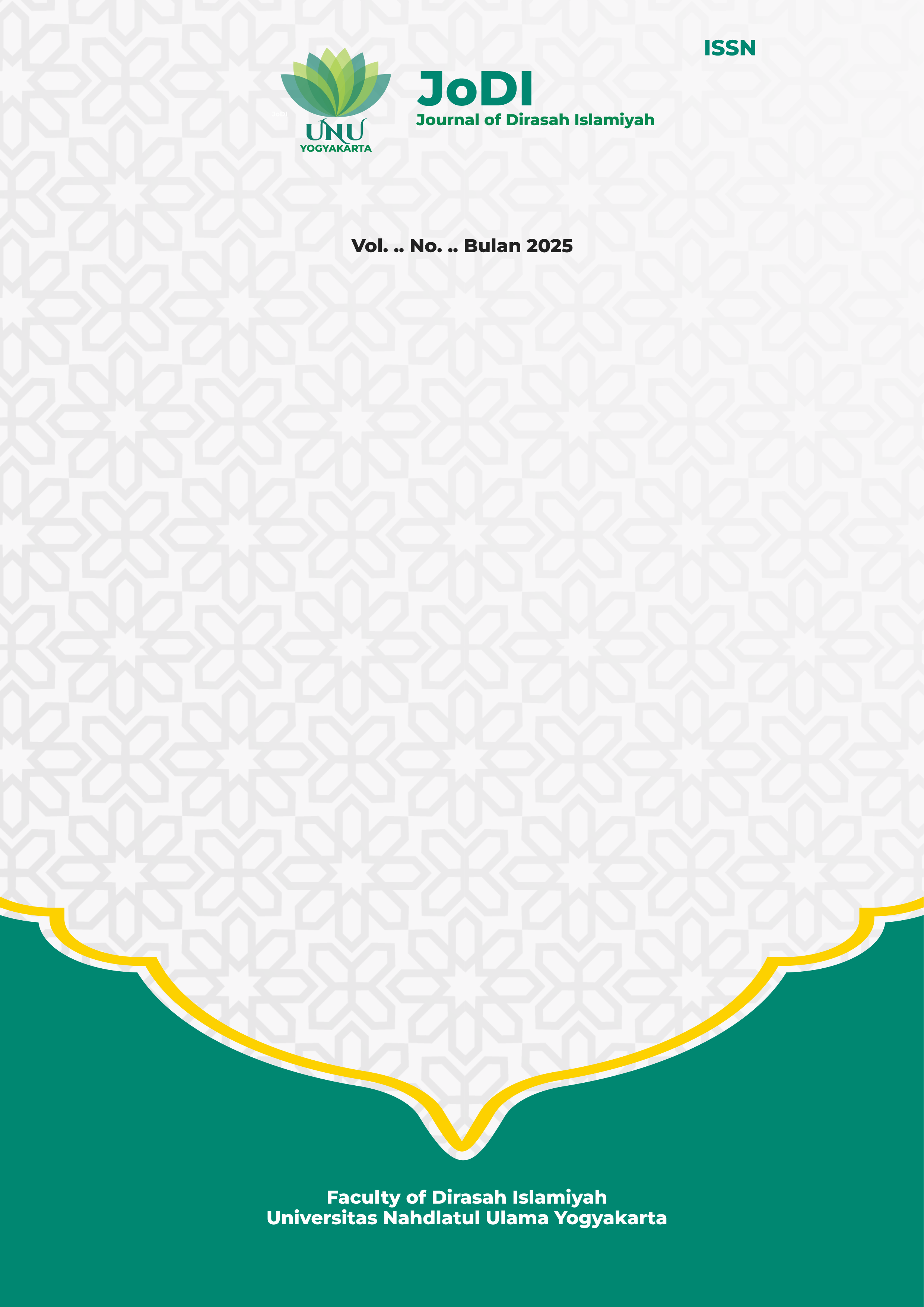 JoDI: Journal of Dirasah Islamiyah is an academic journal published by Faculty of Dirasah Islamiyah Universitas Nahdlatul Ulama Yogyakarta. JoDI: Journal of Dirasah Islamiyah discusses issues of Islamic studies in various fields with the interdisciplinary approaches